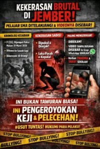 Korban, MFA (15), siswa SMA Ma’arif di Kecamatan Jombang, Kabupaten Jember, diduga mengalami tindakan yang melampaui batas kemanusiaan. Peristiwa ini bukan hanya melukai fisik, tetapi juga menghancurkan psikologis korban serta mencoreng wajah dunia pendidikan.